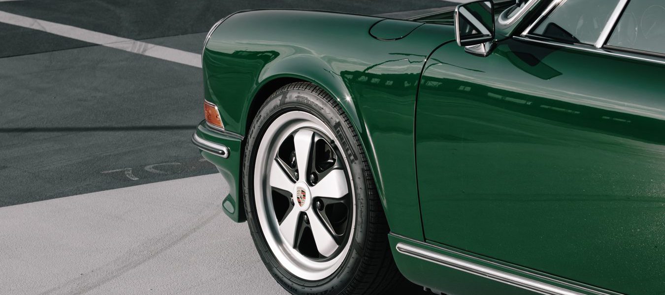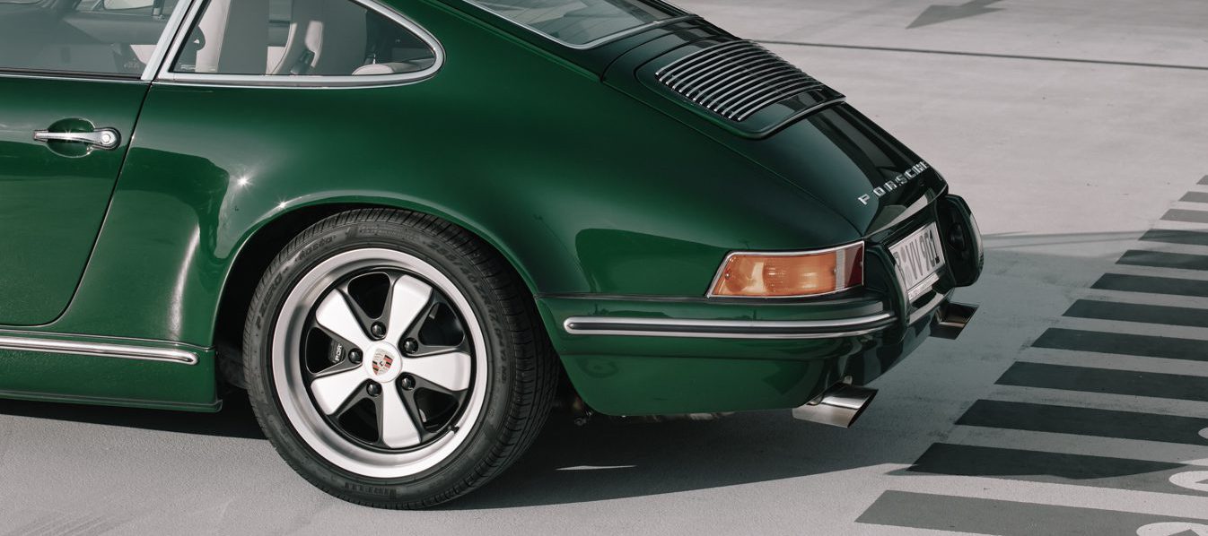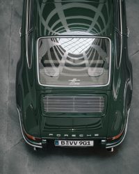 Ganz im Geiste eines modernen Klassikers erhielt der Wagen die klassische Porsche Farbe Irisch-grün. Der Lack wurde originalgetreu im ursprünglichen Einschichtlack Verfahren aufgetragen. Die Sitze wurden mit exklusivem Leder in der Farbe „Anis“ neu bezogen und stehen im geschmackvollen Kontrast zum dunklen Lack des Wagens. Im Inneren wurde zusätzlich ein maßgefertigter Teppich verlegt. Die originalen Instrumente wurden durch klassische Instrumente im Retro Look ersetzt und runden das Erscheinungsbild des Porsches perfekt ab. Trotzdem muss man nicht auf Annehmlichkeiten wie eine Klimaanlage, Sitzheizung, ein Schiebedach, und ein Porsche Classic Radio (PCCM) verzichten.